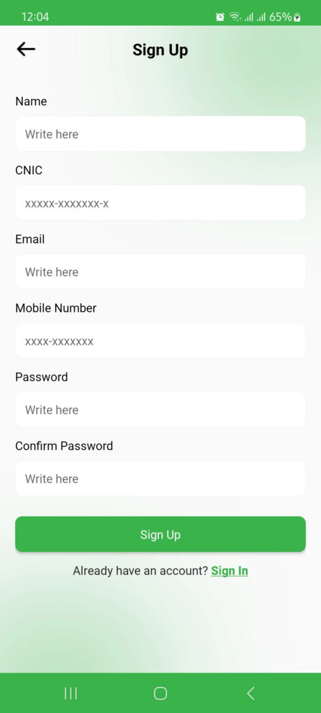 Registering on the portal is simple and can be done using any smartphone with internet access. First, visit mkb.punjab.gov.pk and click on the Sign Up button. A form will appear asking for personal details.
